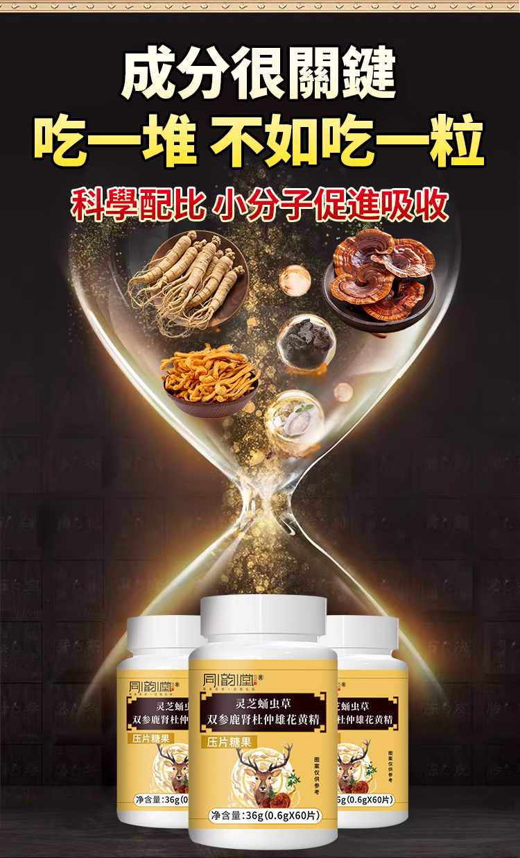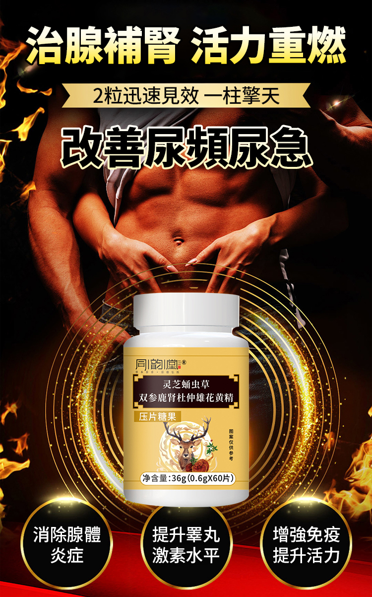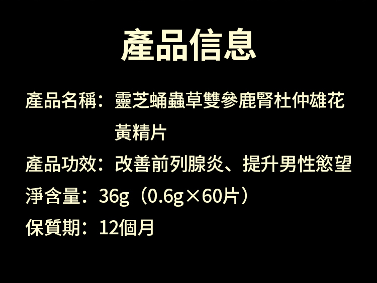 Ganoderma lucidum, Cordyceps militaris, Ginseng, Deer Kidney, Eucommia ulmoides Male Flower Capsules
