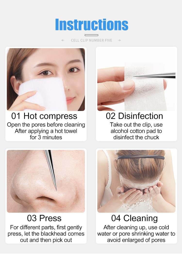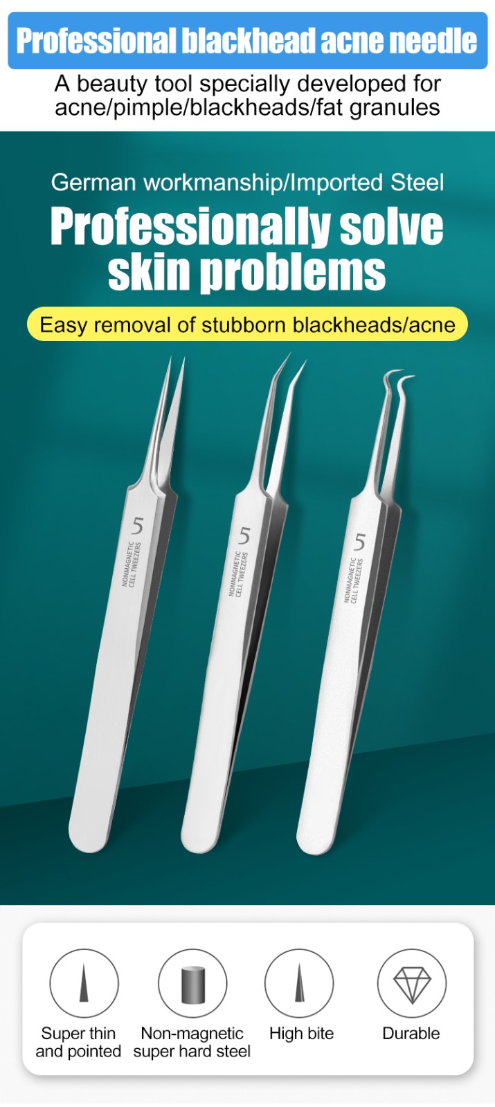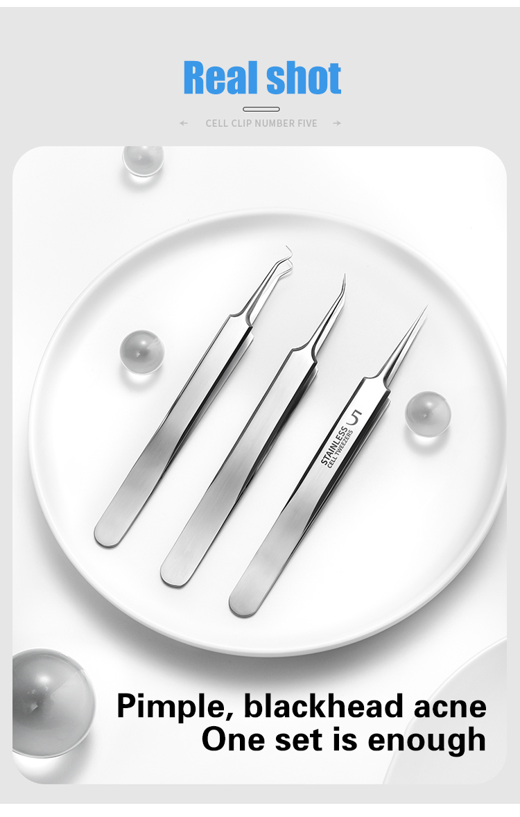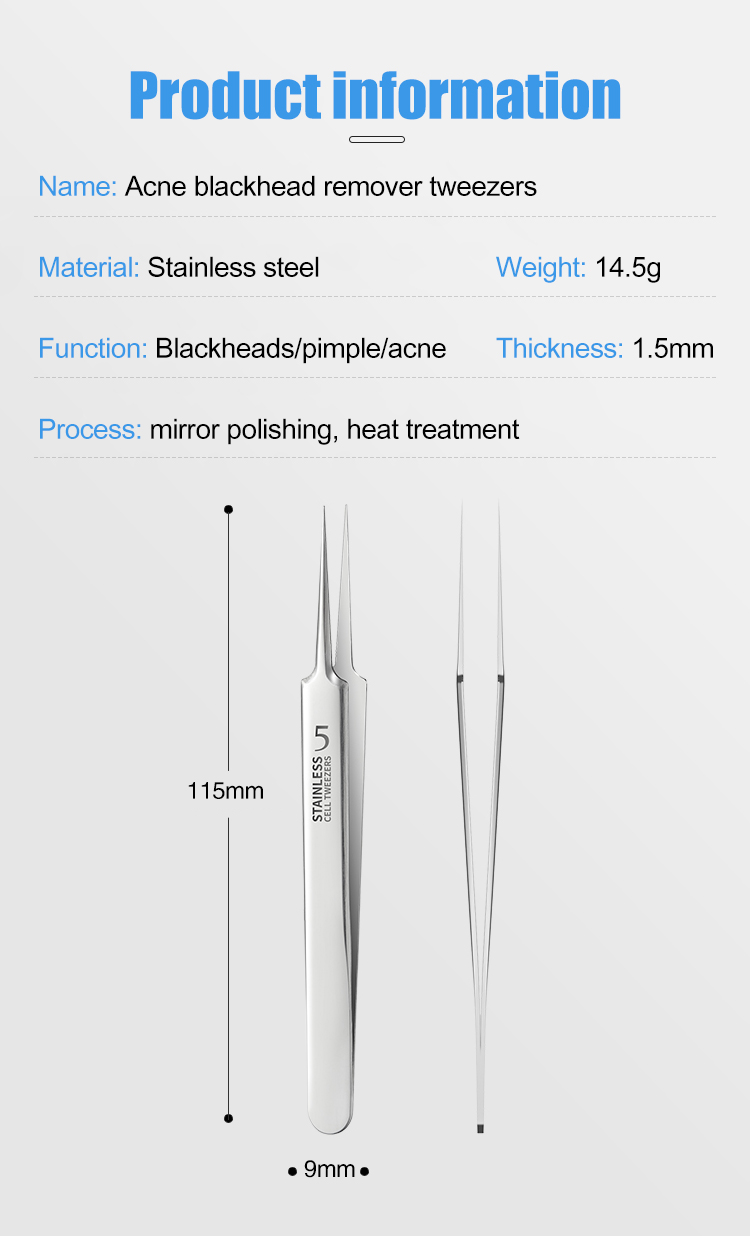 Stainless steel acne and blackhead remover tweezers